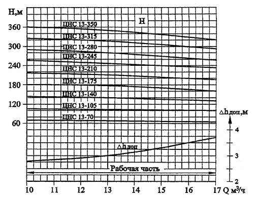 Рабочая часть характеристики по подаче, м3/ч