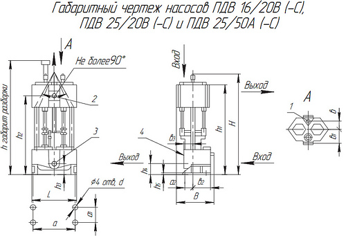 Габаритная характеристика ПДВ 16/20 B-С